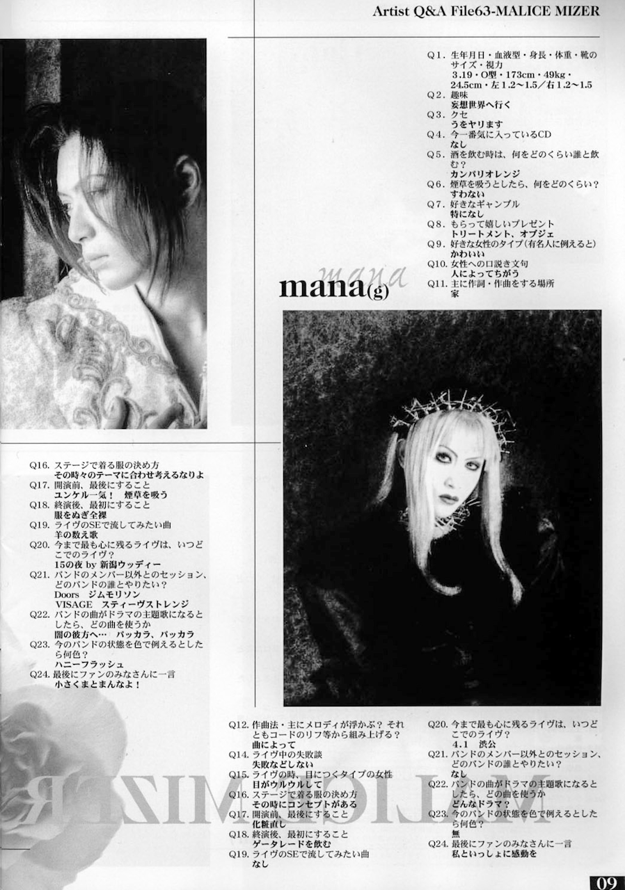 Japanese song lyric transliterations/English translations & ヴィジュアル系 [Vijuaru-Kei] (Visual Kei) magazine scans.