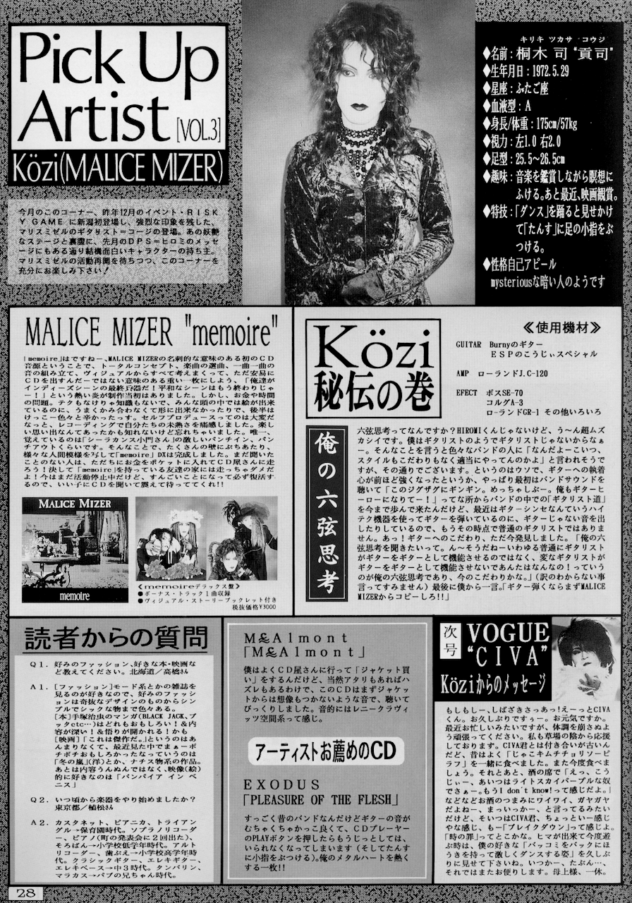 Japanese song lyric transliterations/English translations & ヴィジュアル系 [Vijuaru-Kei] (Visual Kei) magazine scans.